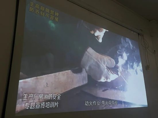 会上,员工们集中认真观看了《消防安全专题宣传培训片》及安全生产事故案例等相关安全生产法规,公司安管员从灭火器的灭火原理、使用、发生火灾时如何求救、逃生自救及各部门班组存在的安全、火灾隐患五个方面进行了详细讲解。