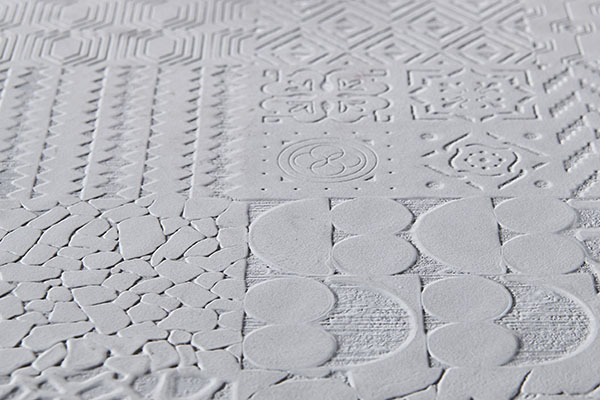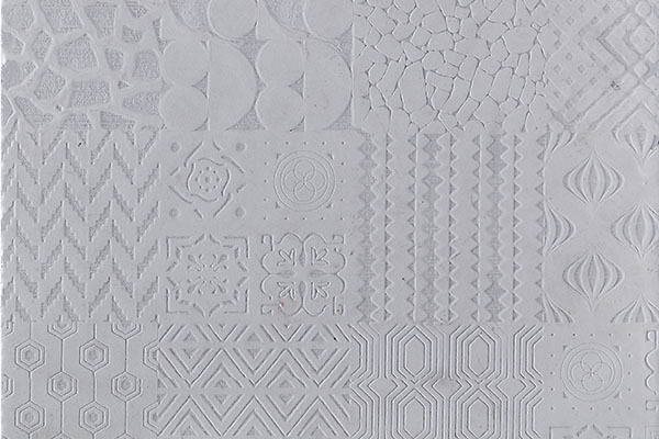 数码模具墨水是通过喷头在瓷砖坯体表面打印堆叠出凹凸不平的纹理图案。相对常规模具,数码模具纹理更加精细,能够精准控制0.1-2mm的纹路。特别针对大板更具优势:不需要制作模具,转产周期短,开发效率高。